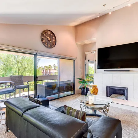 The welcoming Community Pool Access Chic Palm Springs Condo is located in Palm Springs, a 20-minute walk from the O'Donald Golf Course, and pampers guests with a Jacuzzi. With access to a golf club and a golf playground, this apartment is ideal for active guests seeking recreation options.